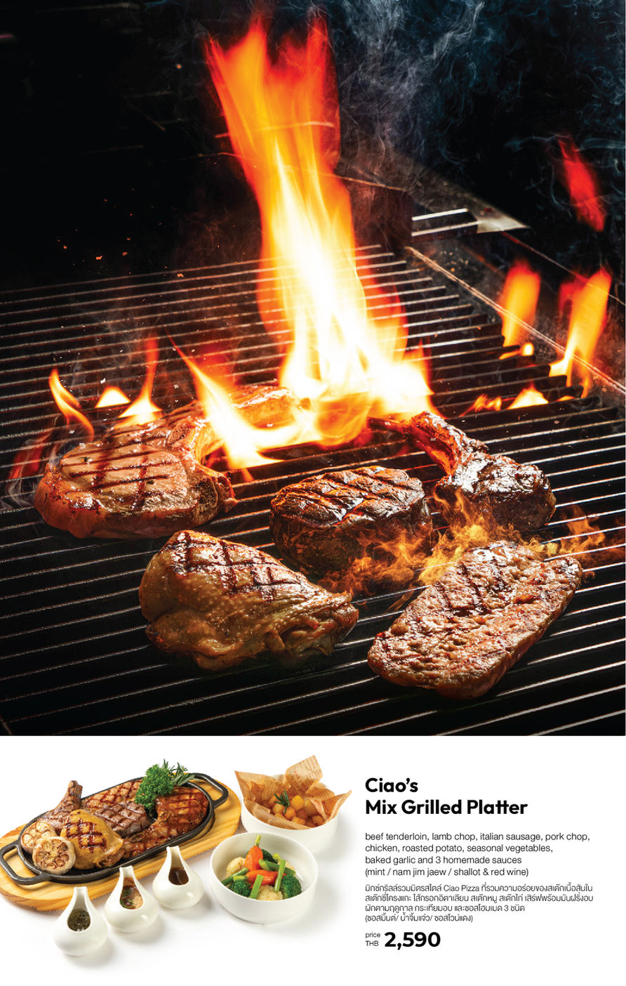 Our menu features the familiar Italian dishes everyone loves from Bangkok, with a local Hua Hin touch. We use fresh,local ingredients, including over 20 seafood options like shrimp, crab, cuttlefish, and sea bass. Our chefs select the freshest produce from the local market daily. Experience the authentic taste of Italian food perfectly combined with the freshness of the sea. Beyond our classic dishes, we offer signature creations unique to this branch, such as our Cheese Wheel pasta, prepared tableside in a dramatic presentation, and our delicious Heart-Shaped Pizza.